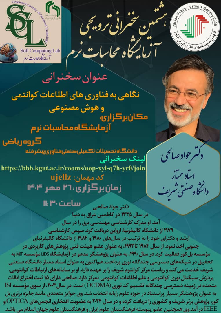 گروه ریاضی دانشگاه تحصیلات تکمیلی صنعتی و فناوری پیشرفته مفتخر است به اطلاع برساند که هشتمین سخنرانی ترویجی آزمایشگاه محاسبات نرم با حضور ارزشمند