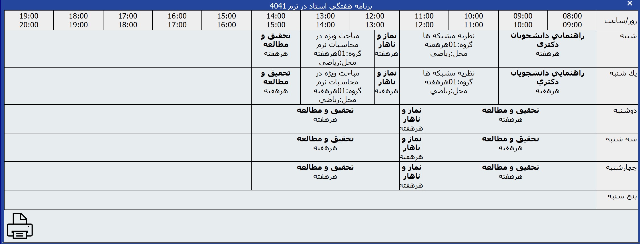 برنامه هفتگی